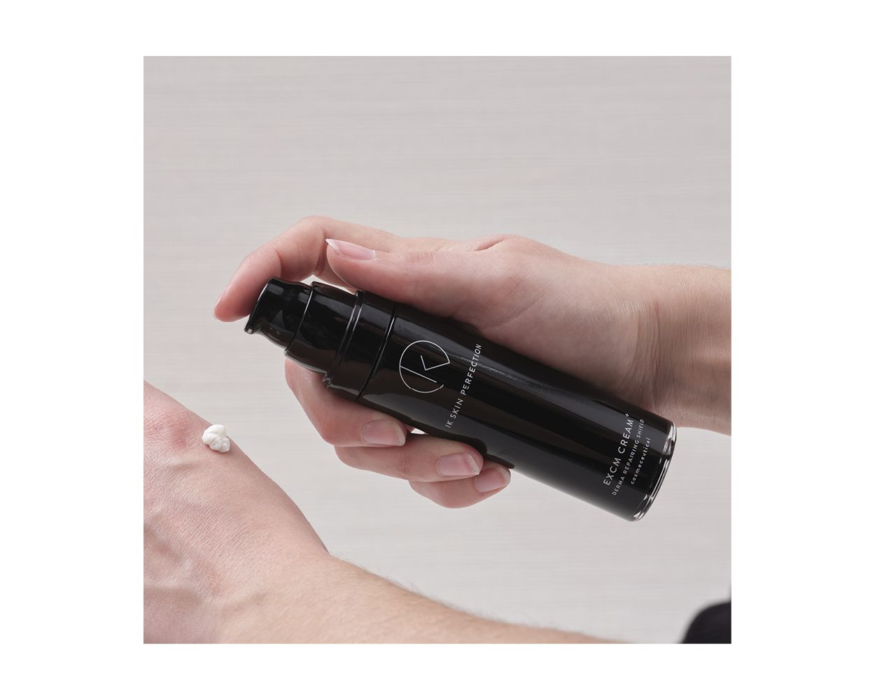 De volle, rijk en stevige EXCM CREAM+ wordt verpakt in een airless bag in bottle systeem. Dit betekent dat de crème volledig luchtdicht verpakt is, en beschermt wordt tegen lucht, licht en vocht. Op deze manier kunnen we maximale kwaliteit garanderen, tot de laatste druppel. Deze crème is stevig, daarom zul je merken dat het oppompen van de crème wat meer inspanning kost, dan dat dat bijvoorbeeld bij het serum het geval is. Rustig pompen is de oplossing.